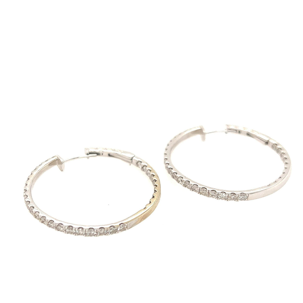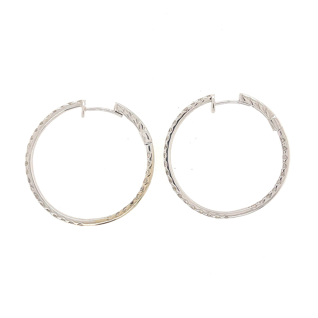 14K White Gold Round Hoop Full Inside and Out Diamond Hoop Earrings