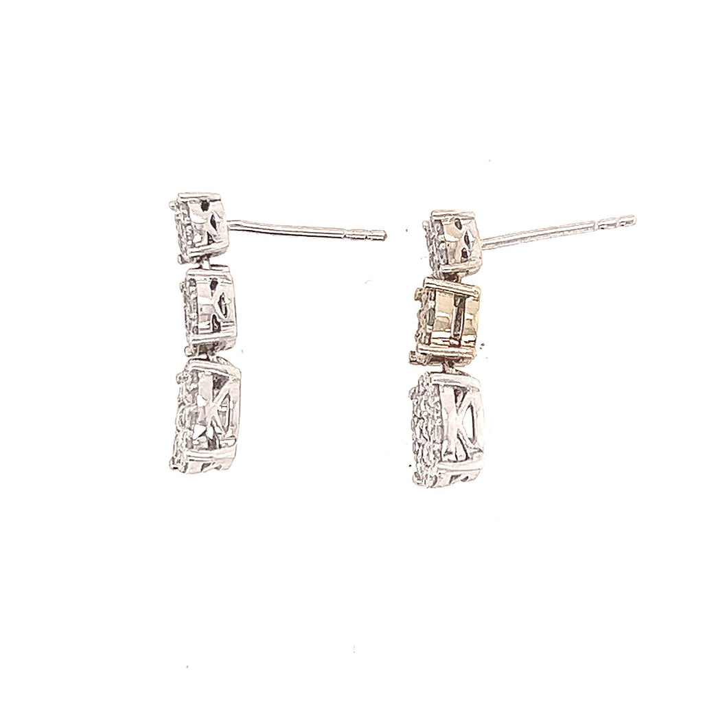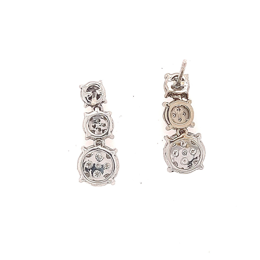 14K White Gold Trio Dangling Round Clustered Diamond Earrings
