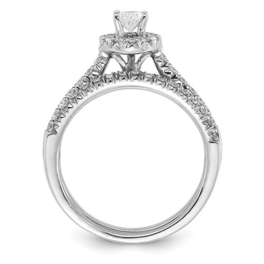 14K White Gold Halo Oval Diamond Wedding Ring Set