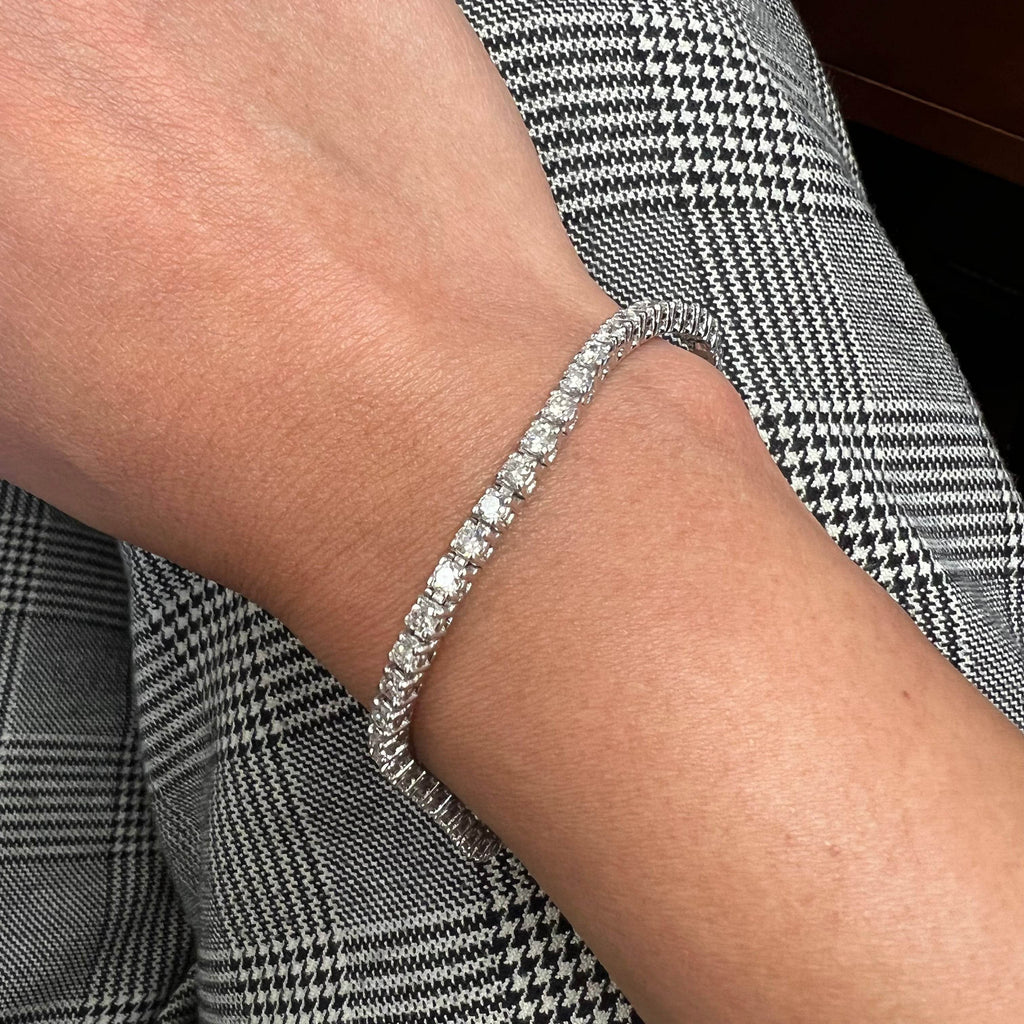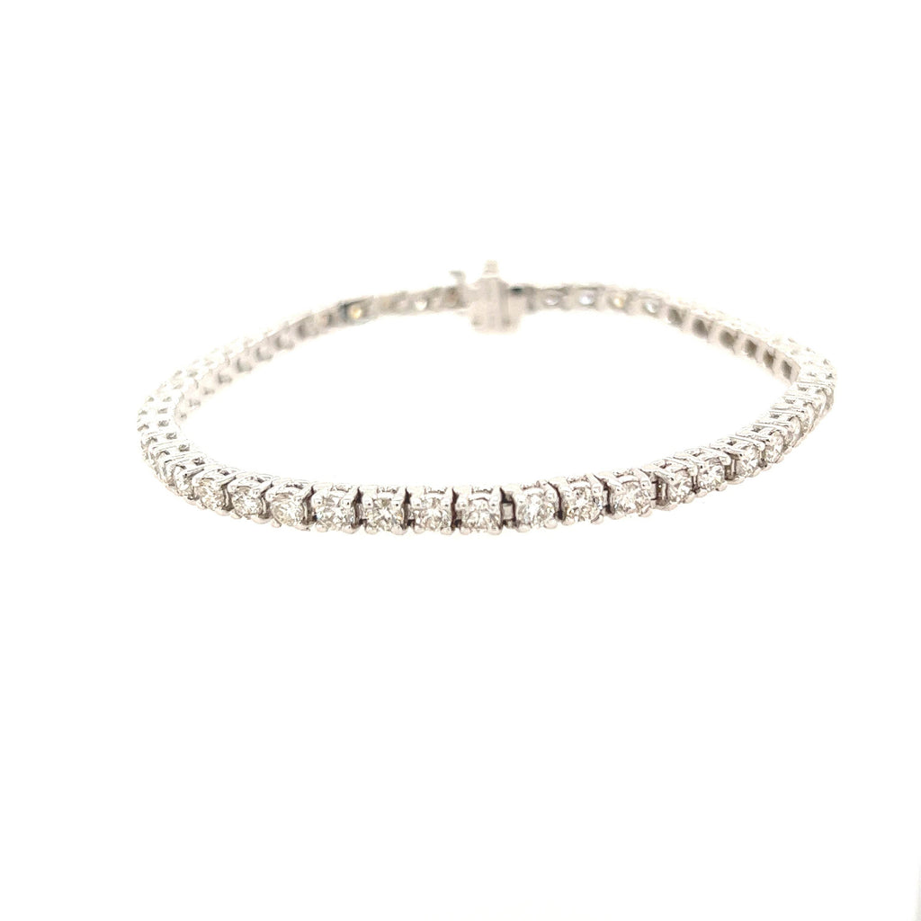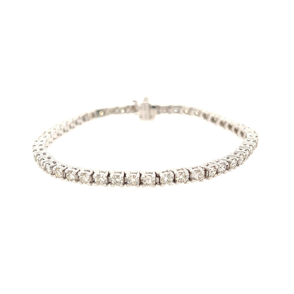 This 14K diamond bracelet is beautifully set with approximate 4.33 carats, shimmering, round brilliant diamonds. The diamonds in this bracelet are SI2 clarity, G-H color. The bracelet will be a perfect gift for any occasion.