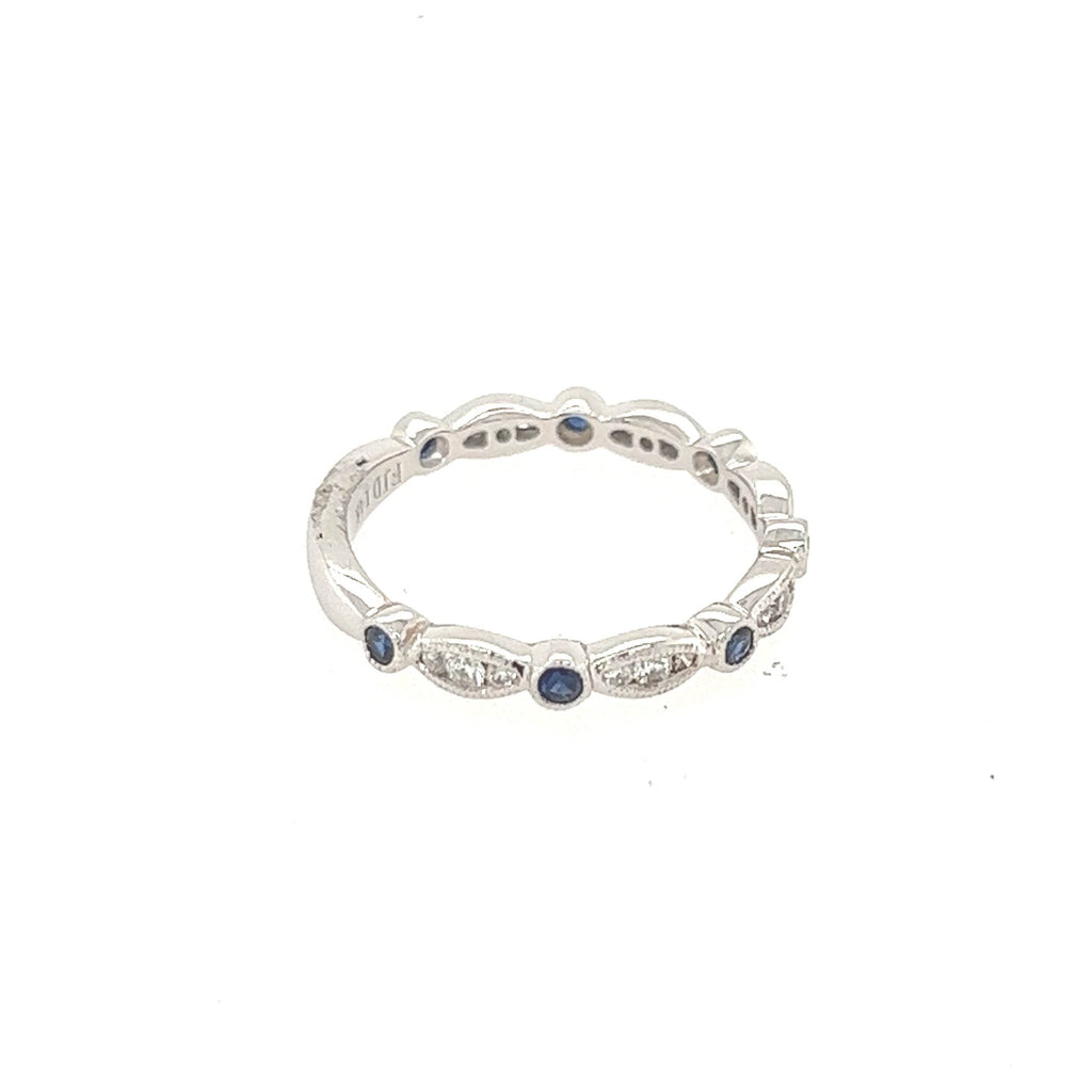 14K White Gold Diamond and Sapphire Fancy Wedding Band