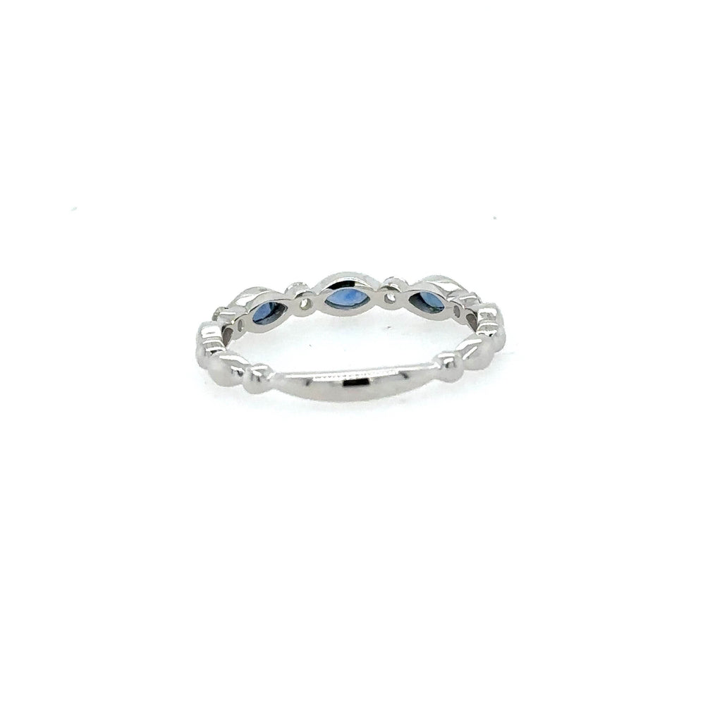 This delicate 18-karat white gold diamond marquise ring wraps elegantly around your finger with a row of round-cut diamonds and marquise blue sapphire. A contemporary design with timeless appeal, it's one you'll treasure for a lifetime.