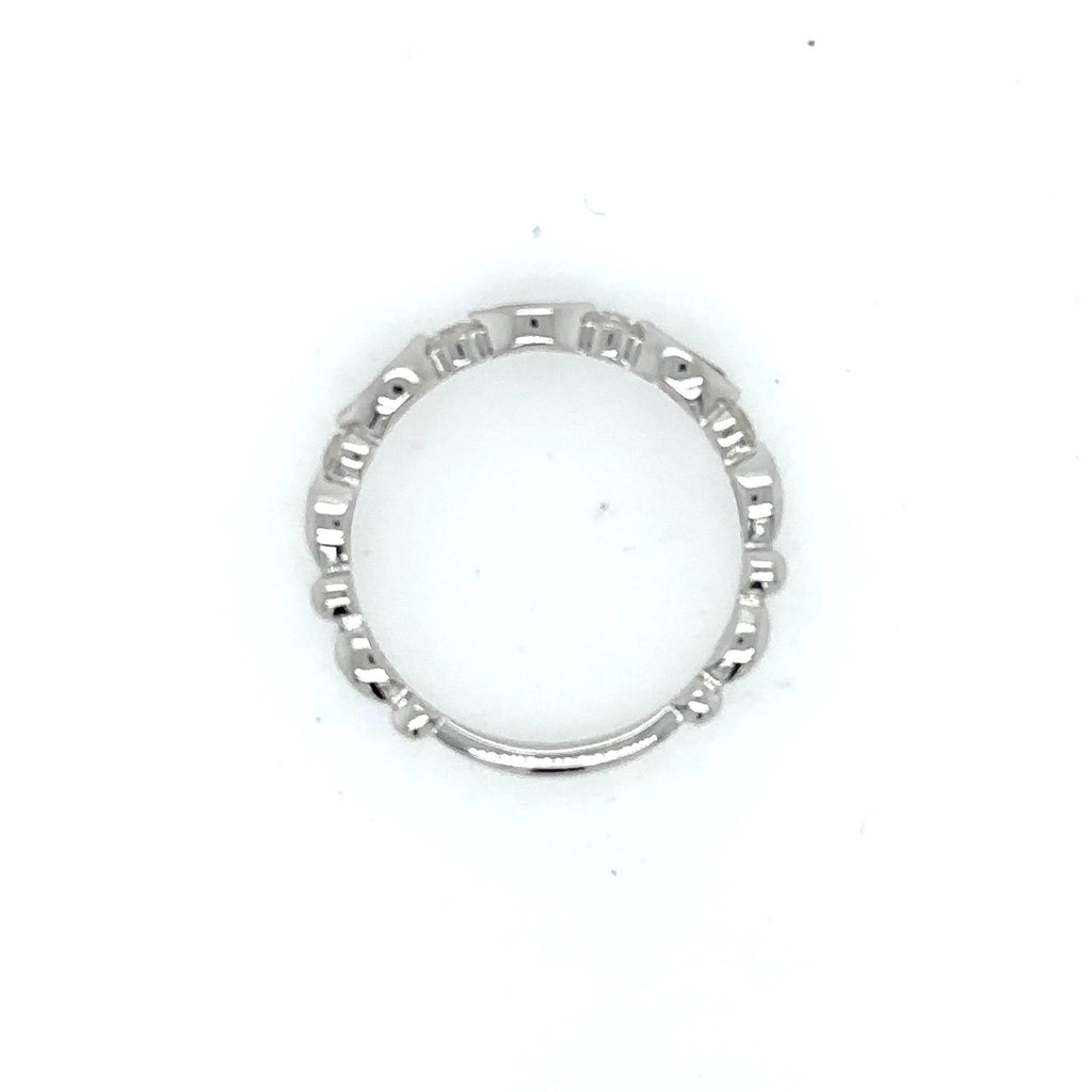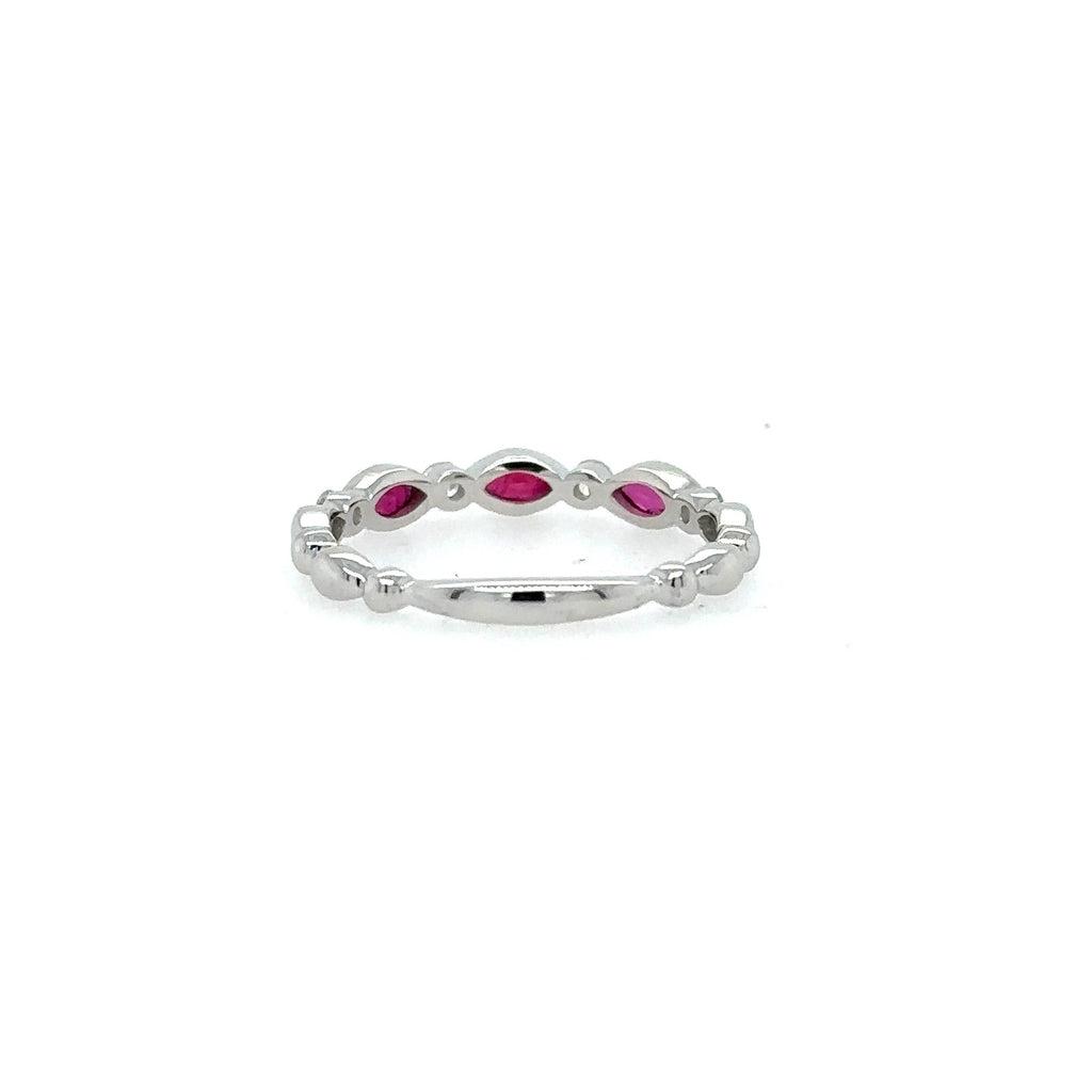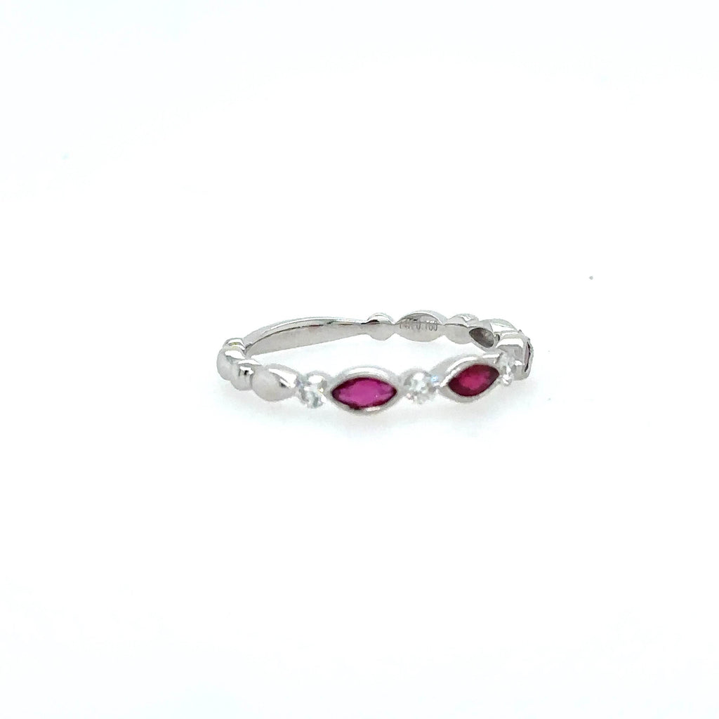 14K White Gold Round Diamond and Ruby Marquise Stacking Ring