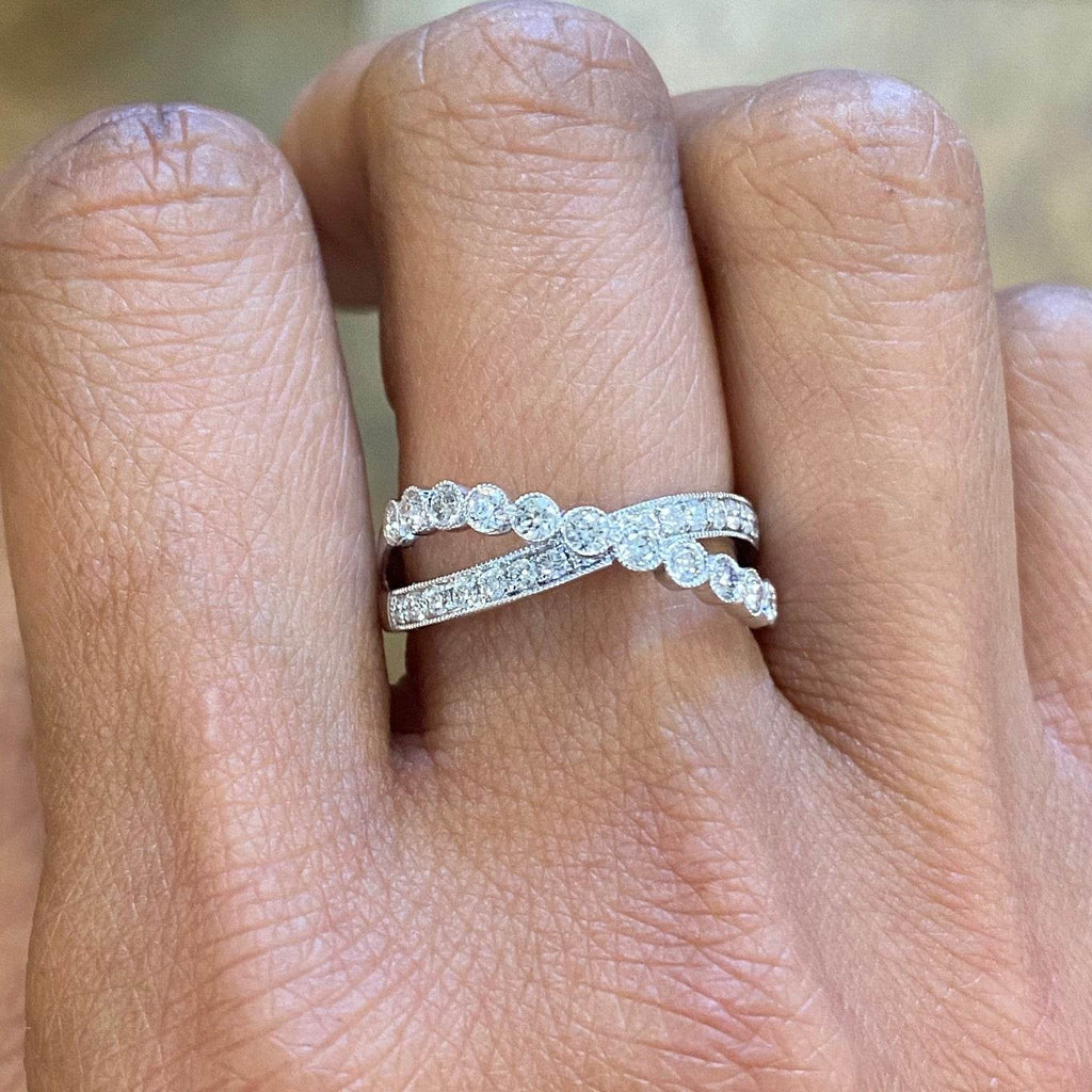 14K White Gold Criss Cross Diamond Ring - Jewelry Design Gallery of East Windsor