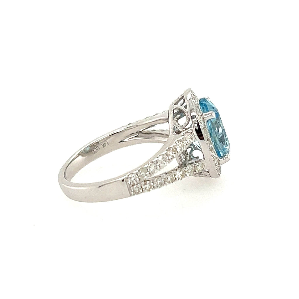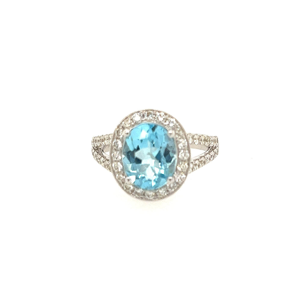 14K White gold Halo Diamond And Blue Topaz Ring