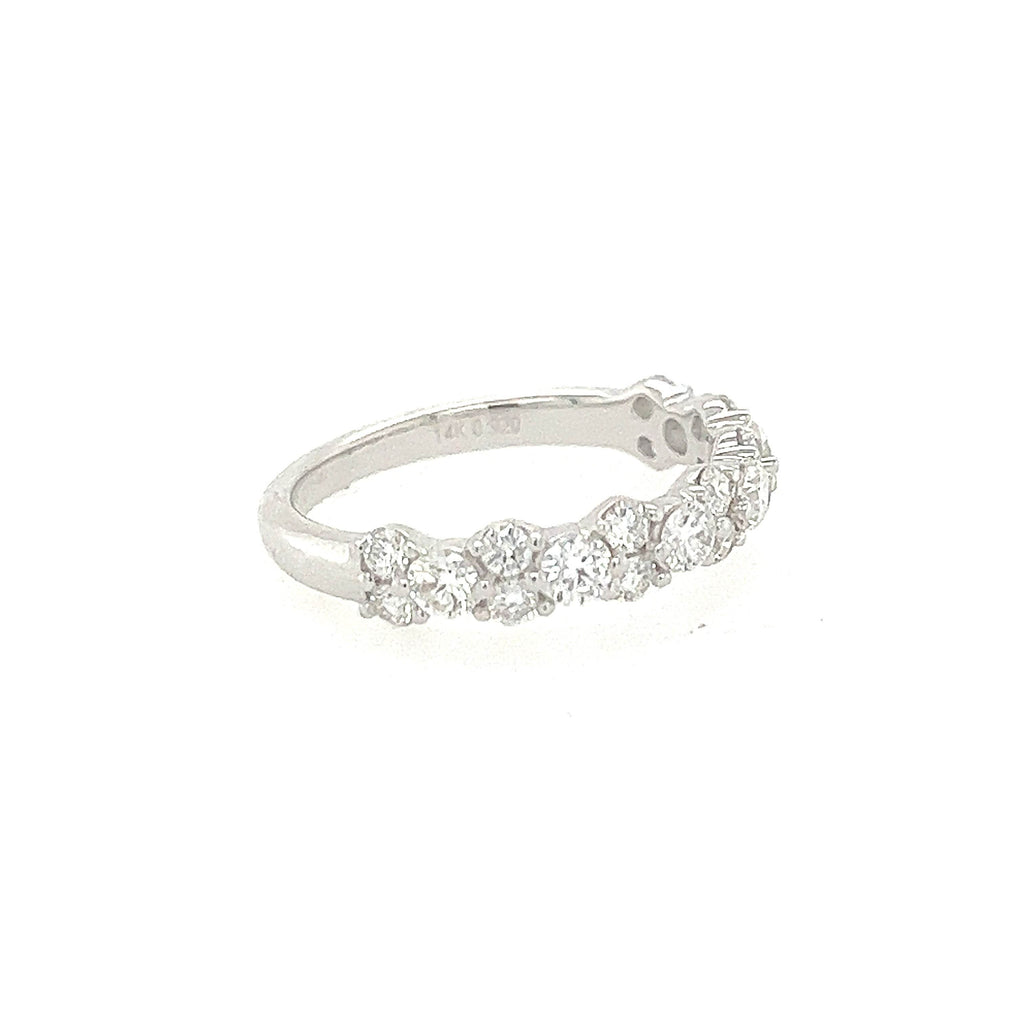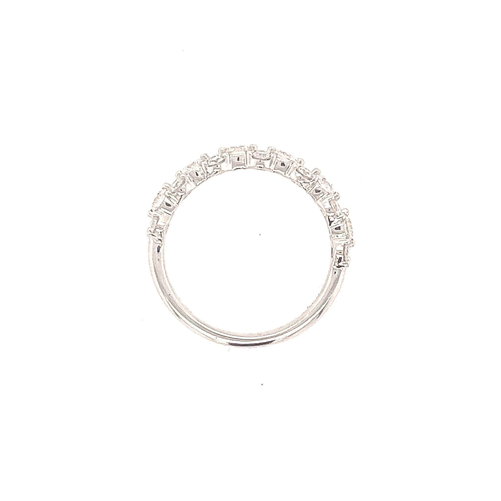 This stunning shared prong diamond wedding band is such a thoughtful wedding ring, anniversary or birthday gift. Beautifully made from 14-karat white gold, it's set with a row of diamonds interspersed with the striking diamond stations. Stack yours with similar styles.